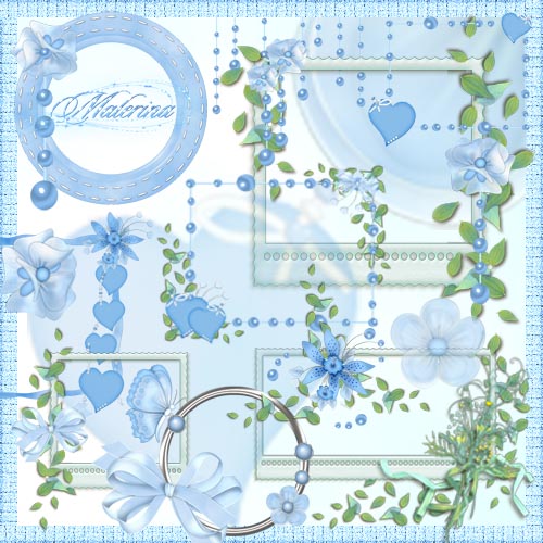 Волшебный скрап набор в голубых тонах включает 62 элемента PNG, 5 рамочек PNG, 20 фонов JPG 3600х3600.