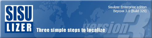 Sisulizer — программа для локализации разнообразного программного обеспечения. Процесс локализации происходит путём сканирования приложения и определения всех участков текста. Поддерживает работу непосредственно в C++ Builder, Delphi, Visual C++, Visual Basic, jаvа, XLIFF. Позволяет визуально работать с HTML и XML, а также отбирать текст из текстовых файлов и баз данных.