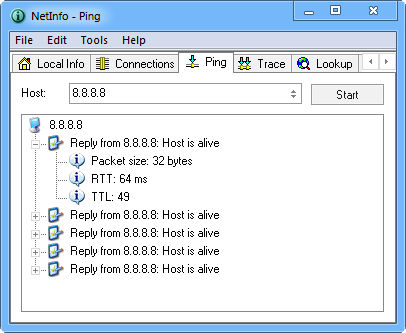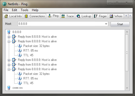 Netinfo - комплект программ, предназначенный для получения данных о состоянии локальной сети и отдельном персональном компьютере в сети. Netinfo выдаст подробный отчет, в котором отображены процессы, создающие сетевые подключения, и серверы, к которым они производят подключение. Также утилита выполнит пинг или трассировку до любого хоста и выдаст информацию о владельце того или иного сайта при помощи whois.