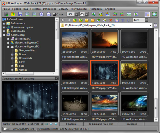 FastStone Image Viewer - вьювер, редактор и конвертор графических файлов. Поддерживает все популярные форматы графики, включая JPEG, JPEG 2000, GIF, PNG, PCX, TIFF, WMF, BMP, ICO, RAW и TGA. Обладает простым и удобными интерфейсом, сочетая его с большим количеством полезных возможностей. Поддерживается пакетное изменение размеров и переименование картинок, удаление ненужных фрагментов, подгонка и изменение цветов, установка водяных знаков и т.д. и т.п. Имеется возможность создавать слайдшоу с более чем 150 эффектами перехода и фоновой музыкой, присутствует различные графические эффекты, ZOOM, полноэкранный режим, поддержка работы со сканером и т.д. Кроме всего этого, программа умеет делать скриншоты экрана, причем как экрана целиком, так и любой его части.