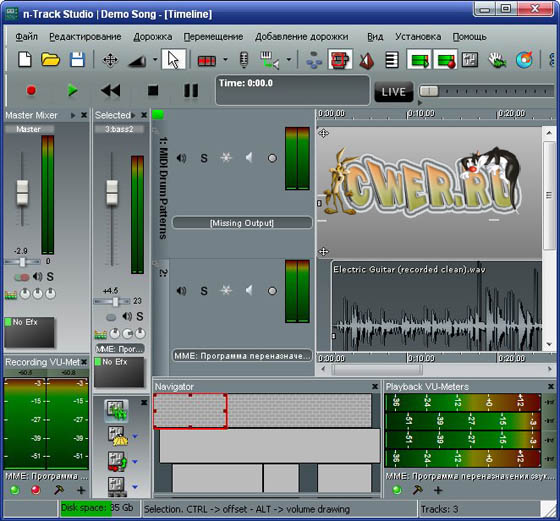 n-Track Studio поможет вам превратить ваш компьютер в домашнюю звукозаписывающую студию. Программа представляет полнофункциональную многотрековую аудиостудию, позволяющую в домашних условиях создавать свои собственные профессиональные музыкальные композиции. Вы сможете записывать и воспроизводить огромное число аудио и MIDI треков одновременно, накладывать всевозможные эффекты на каждый трек, работать с каналами и т.д. Кроме стандартных эффектов (Reverb, Compression, EQ, Echo, Auto volume, Pitch Shift и Chorus), программа позволяет подключать DirectX и VST 2.0 плагины от сторонних разработчиков. N-Track Studios может работать с любыми стандартными или многоканальными 16 и 24-битными звуковыми картами.