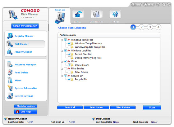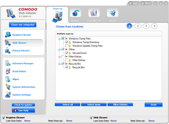 Comodo System Cleaner - комплекс программ для очистки и настройки системы. Включает в себя: очистка диска, реестра, менеджер автозагрузки, тест системы и многое другое.