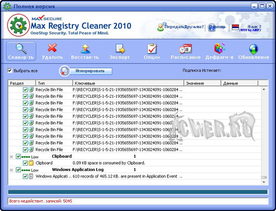 Программное обеспечение Max Registry Cleaner устраняет различные помехи и ненужный хлам, который "растет" в реестре Вашего компьютера из-за постоянной установки и удаления программ, удаления и создания файлов и Вашей он-лайн деятельности. Это приводит к быстрой оптимизации реестра, который и позволяет Вашему компьютеру выполнять работу должным образом. Без подобной "чистки" Ваш компьютер может стать медленным, полным сообщений об ошибках и кроме того, часто вызывать системные сбои.