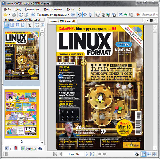 STDU Viewer – новая русскоязычная версия бесплатной программы для просмотра DjVu, PDF и TIFF файлов. В последнее время большой популярностью пользуются электронные книги в формате DjVu. Файлы в этом формате, как правило, меньше по размеру, чем документы в формате PDF. Однако программы для просмотра PDF не поддерживают DjVu, из-за чего приходится работать сразу с двумя вьюверами. STDU Viewer делает просмотр электронной документации более удобным.