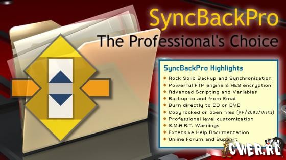 SyncBackPro - это удобный и мощный инструмент, который поможет быстро создавать резервные копии данных. Поддерживается работа как на локальном компьютере, так и через FTP сервер. Важные для пользователя данные с помощью этой программы можно записывать на CD-RW диски и CompactFlash карты. После инсталляции SyncBack Pro интегрируется в контекстное меню Проводника, что позволяет быстро создать копию важного файла или синхронизировать каталог. Настройки программы весьма понятны, если в чём-то вы затрудняетесь, то внимательно смотрите за всплывающими подсказками или читайте подробное справочное руководство. Среди возможностей SyncBackPro стоит выделить интеграцию с Windows Task Scheduler, детализированные логи в формате HTML, работа с несколькими копиями, фильтр файлов, проверка копий и т.д.