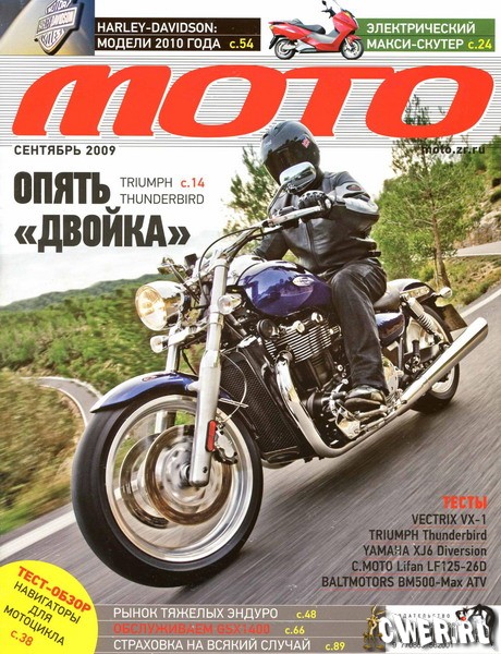 Крупнейший отечественный журнал о мототехнике и мотоциклистах. Выпускается издательством "За рулём" с 1991 года. В каждом номере: премьер-тесты, обзоры выставок, мировые новинки, актуальные тенденции рынка; рассказы о захватывающих поездках на мотоциклах по миру и России, о приключениях, описание маршрутов; секонд-тесты, лучшие модели прошлых лет; экзотические, уникальные мотоциклы и их создатели; обзоры выставок и многое другое.
