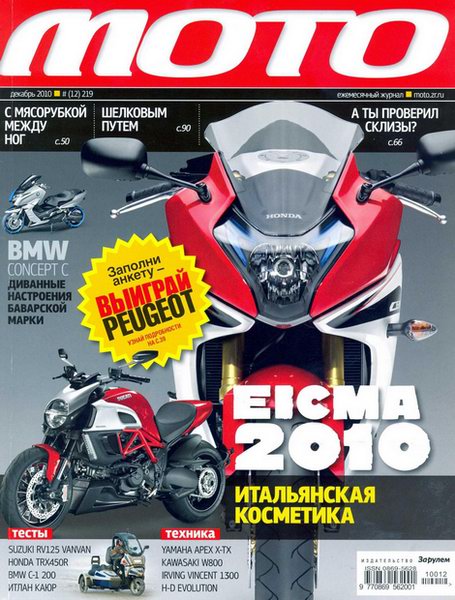 Журнал "Мото" — первый крупнейший в России ежемесячный журнал о мототехнике и мотоциклистах. Выпускается издательством "За рулем" с 1991 года. В каждом номере Вы найдете: премьер тесты, обзоры выставок, мировые новинки года, самые актуальные тенденции рынка; рассказы о захватывающих поездках на мотоциклах по миру и России, о приключениях, описание маршрутов; секонд-тесты, лучшие модели прошлых лет; экзотические, уникальные не стандартные мотоциклы и их создатели; обзоры выставок и многое другое ...