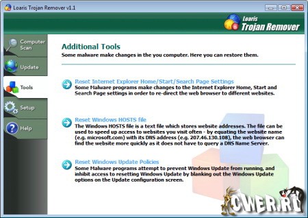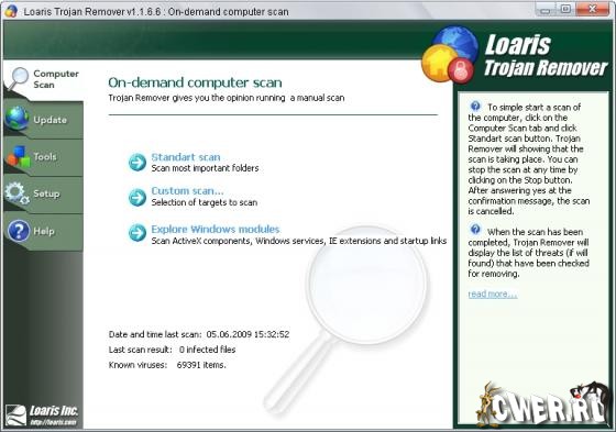 Loaris Trojan Remover - это программа, с помощью которой Вы сможете целиком очистить свой компьютер от всех агрессивных угроз. Trojan Remover спроектирован для удаления вирусных программ без необходимости в ручном удалении. Программа просматривает все файлы, загруженные во время старта системы, на наличие Adware, Spyware, троянов, червей и др. Trojan Remover также удаляет дополнительные системные обновления, которые были занесены вредоносным программным обеспечением.
