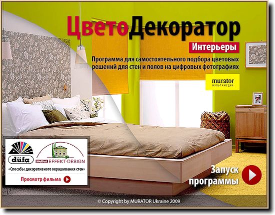 Мультимедийный продукт был создан для самостоятельного подбора цветовых решений стен и полов с применением различных материалов. Главной функциональной особенностью является создание цветных проектов на основе цифровых фото или компьютерных визуализаций проектируемых помещений. Инсталляция не требуется, авторы приложили все усилия, чтобы программа работала корректно на всех компьютерах нашего рынка.