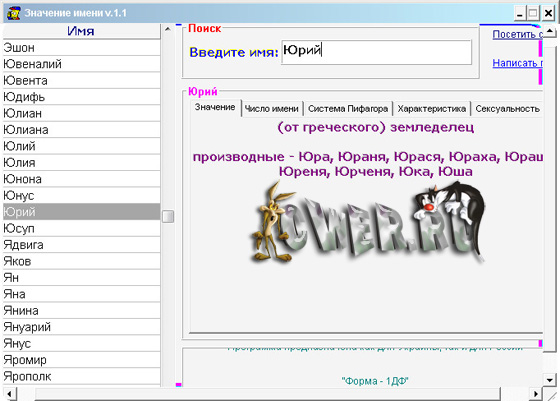 Значение имени - программа поможет узнать Вам значение своего имени, вычислит число имени и рассчитает квадрат Пифагора, расскажет о Вашей сексуальности.