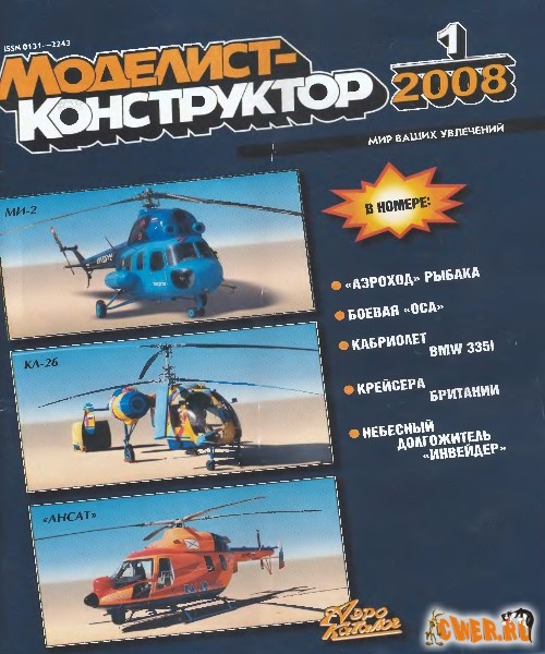 Моделист-конструктор - ежемесячный популярный научно-технический журнал, освещающий вопросы научно-технического творчества молодежи, рационализаторской работы, конструирования новой любительской техники, деятельности общественных конструкторских бюро, клубов, кружков юных техников и др., рассказывает об истории русской, советской и зарубежной техники, о боевых подвигах советских летчиков, танкистов, моряков. Печатаются чертежи, описания и другие материалы для моделистов и конструкторов-любителей...