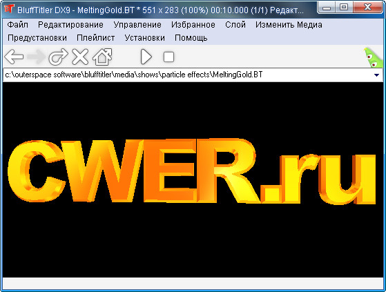 BluffTitler DX9 - это программа для создания красивых текстовых эффектов, применяемых при DVD-авторинге, а также трехмерной мультипликации. Результат можно просматривать в реальном времени с экспортом в картинку, видео формат, VJ и вебсайты. Мультипликации построены из слоев, которые могут отделяться независимо. Программа поддерживает множество различных типов слоев: камера, свет, текст, картика, видео, плазма, частица и аудио и т.д. Слои могут быть связаны друг с другом для создания специальных эффектов. Программа тесно интегрируется с такими пакетами как: Pinnacle Studio, Sony Vegas, Ulead VideoStudio, MAGIX Video, Canopus Edius и Adobe Premiere.
