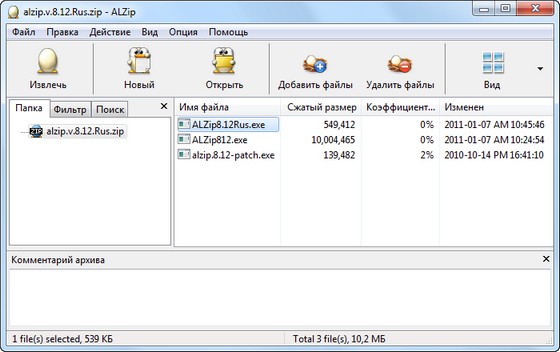 ALZip - архиватор, поддерживающий открытие архивов и сжатых файлов 36 форматов и создание архивов 8 форматов - ALZ, BH, CAB, TGZ, JAR, LZH, TAR, и ZIP. Возможно создание самоизвлекающихся архивов, установка на архив пароля, создание многотомных архивов, интеграция с антивирусной программой и многое другое. Может работать с образами ISO, BIN, а также с виртуальными CD (LCD). Поддерживаются 32- и 64-битные ОС.
