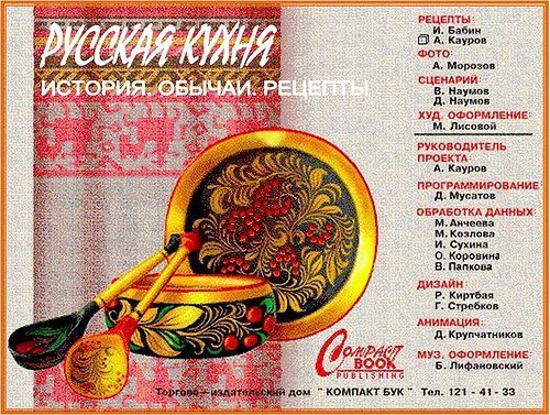Несмотря на свои невеликие размеры (как для мультимедиа), программа очень насыщена. Она вам и спляшет, и споет, и на гармошке сыграет, и по улице проведет с заходом в приглянувшийся трактир. Достаточно лишь щелкнуть по вывеске. Но главное в ней - это, конечно, рецепты. Свыше 750 блюд русской национальной кухни с указанием калорийности, выхода порций и даже времени приготовления. Умели люди раньше делать - не халтурили.