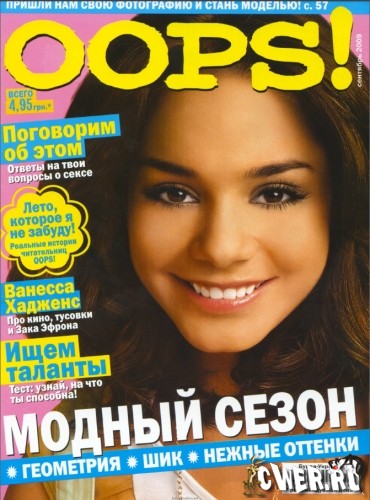 Oops! — ежемесячный журнал для стильных девушек, для тех, кто только открывает для себя мир глянцевых женских журналов. Oops! — это новые тенденции моды для молодых красавиц, советы экспертов по косметике и уходу за собой, а также специальные репортажи по самым важным проблемам, какие только могут волновать девушек на пороге взрослой жизни.