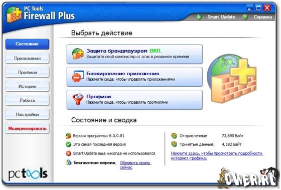 Вышла новая версия PC Tools Firewall Plus – это бесплатный, простой в использовании, но эффективный персональный фаирвол для Windows, защищающий информацию, хранящуюся на вашем компьютере, от несанкционированного доступа из локальных сетей или Интернета.