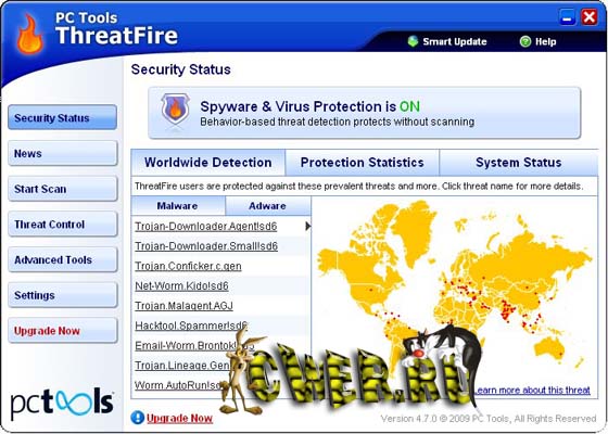 PC Tools ThreatFire обнаруживает вредоносные программы, основываясь исключительно на анализе их поведения, и поэтому может блокировать новые виды,типы угроз, не распознаваемых сигнатурными анализаторами антивирусных программ...