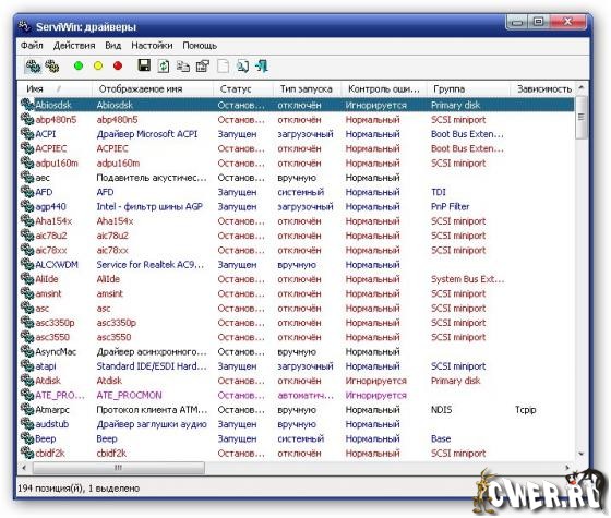 Маленькая утилита, показывающая список всех установленных в системе драйверов и сервисов. Кроме этого, ServiWin позволяет быстро останавливать, запускать, перезапускать работу сервисов / драйверов и изменять тип запуска.