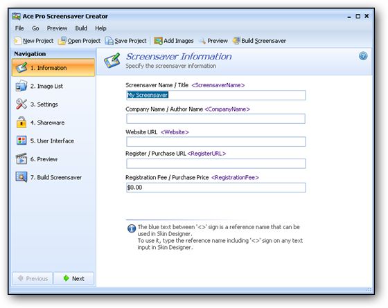 My Screensaver Maker - программа для создания ваших собственных скринсейверов. Просто перетащите желаемые изображения и flash-анимацию - и через несколько секунд у вас будет ваш собственный профессиональный скринсейвер. Теперь вы можете создавать скринсейверы в виде слайд-шоу за несколько секунд. Кроме того, вы сможете создать установочный файл скринсейвера, отослать его по электронной почте или опубликовать на своем веб-сайте. Программа поддерживает форматы изображений BMP, JPEG, аудио форматы mid,wav,wma,mp3 и имеет более 120 эффектов переходов.