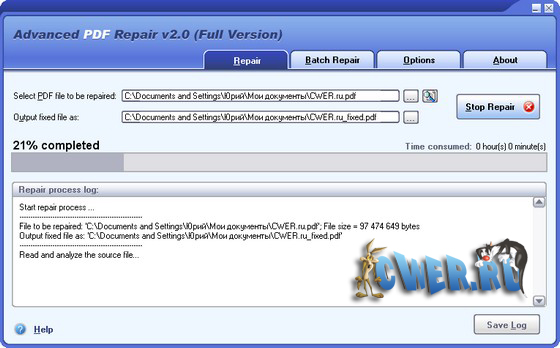 Advanced PDF Repair - мощная программа для восстановления PDF документов. Программа использует расширенные технологии для сканирования испорченного или поврежденного PDF файла и восстановит ваши данные в них настолько, насколько это осуществимо, уменьшая потери данных в поврежденном документе. На данный момент, программой поддерживаются все версии документов Adobe PDF. Кроме того, программа интегрируется в проводник Windows, поддерживает функцию Drag-and-drop и работу с параметрами командной строки, которые помогут сделать работу с данной программой быстрее и легче. Программа обладает простым и понятным в использовании интерфейсом.