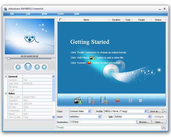 Joboshare AVI MPEG Converter - является не только мощным AVI в MPEG конвертором, но и профессиональным MPEG в AVI конвертором, который может конвертировать видео файлы различных форматов в AVI и MPEG формат.
