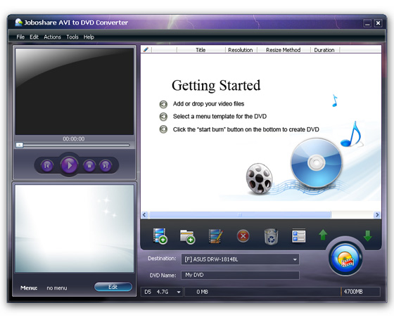 Joboshare AVI to DVD Converter - является профессиональным AVI в DVD конвертором и программой для записи AVI на DVD. Всего за несколько шагов, вы можете легко конвертировать и записывать все популярные видео файлы, включая AVI, MPEG, DAT, DivX, Xvid, VOB в DVD для резервного копирования.