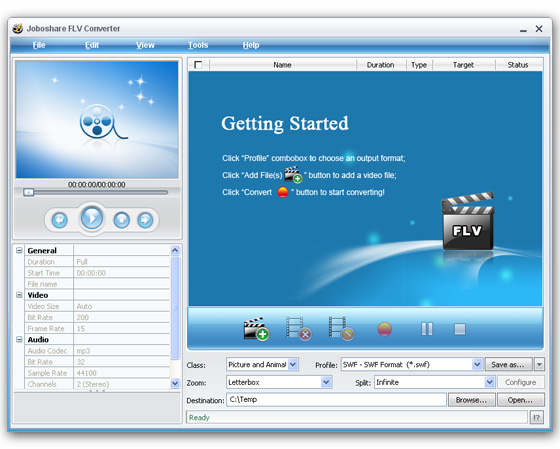 Joboshare FLV Converter - является мощным флэш видео кодирующем решением, для преобразования любого видео в форматы потокового видео SWF и FLV. Все видео в FLV формат, AVI в FLV конвертор, MPEG в FLV конвертор, WMV в FLV конвертор, MOV в FLV конвертор, RM в FLV конвертор и т.д. Все видео в SWF формат, AVI в SWF конвертор, MPEG в SWF конвертор, WMV в SWF конвертор, MOV в SWF конвертор, RM в SWF конвертор, FLV в SWF конвертор и т.д.