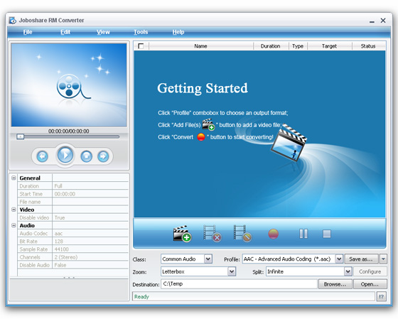 Joboshare RM Converter - является мощным RM и RMVB конвертором, который может конвертировать RealMedia RM, RMVB в популярные видео форматы, включая AVI, DivX, XviD, MPEG1, MPEG2, VOB, WMV и так далее. RM конвертор может также преобразовывать RM и RMVB в MP3, AAC, WAV, WMA аудио форматы.