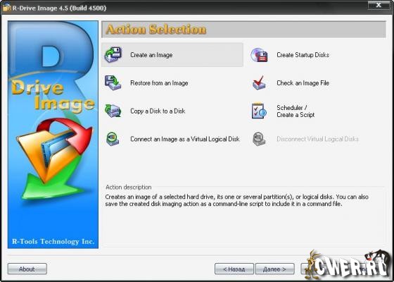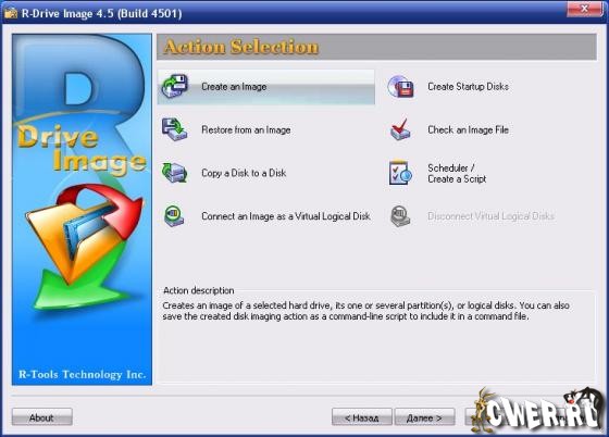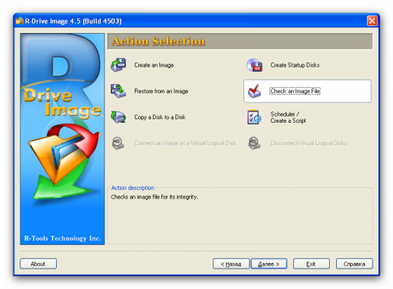 R-Drive Image является эффективной утилитой для создания файлов образа диска и резервного копирования данных. Файл образа диска, содержащий точную, "байт в байт" копию жесткого диска, раздела или логического диска, может быть создан без перезагрузки компьютера и с различным уровнем сжатия данных. Созданный образ диска может быть сохранен на носителях различного вида, включая такие съемные носители, как CD-R(W)/DVD, Iomega Zip и Jazz диски. R-Drive Image это одна из лучших утилит резервного копирования и восстановления данных для предотвращения их катастрофической потери после непоправимых сбоев операционной системы или аппаратной части.