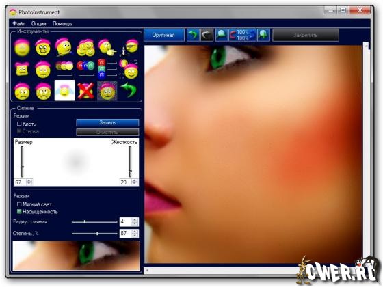 PhotoInstrument - Волшебный "Легкий" Редактор для обработки портретов цифровых фотографий. От Очистителя Кожи до придания ему Гламурного Вида "глянцевых журналов", попутно включая инструменты для: ретуширования, удаления красных глаз, сглаживания морщин, увеличения чёткости, коррекции цвета и многого чего еще, для приданию портрету совершенного вида и желаемой привлекательности.