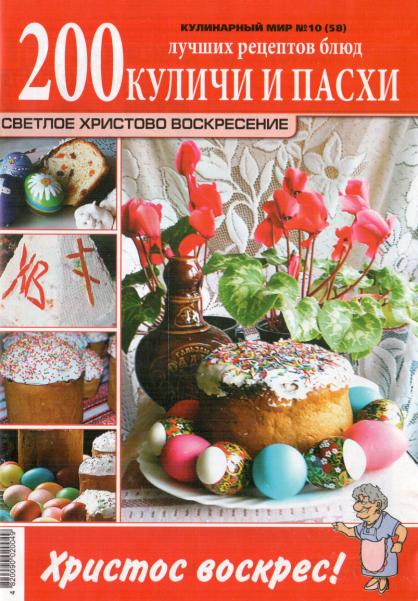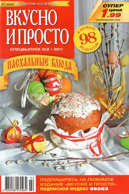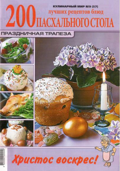 Журнал по кулинарии. Выпуск посвящен празднику Пасхи. Вы найдете много рецептов для праздничного стола: куличи, пасхи, салаты и многое другое.