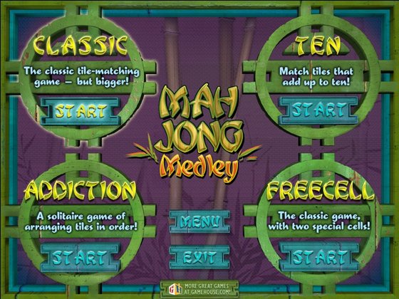 У игры Super Mah Jong теперь появился «старший брат»: Mah Jong Medley. Теперь вы можете выбрать один из 300 оригинальных раскладов, от совершенно простых до исключительно сложных.