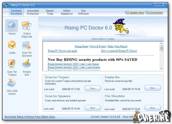 Вышла новая версия Rising PC Doctor - относительно небольшой, но в тоже время профессиональной и удобной программы по обеспечению безопасности компьютера. Включает пакет весьма полезных функций, среди которых: автоматический анализ вредоносных программ, установка защиты на USB устройства хранения, возможность восстановления Microsoft Internet Explorer и Windows, программа обнаружения и блокировки троянов, защита от вредоносных веб сайтов, защита веб браузера и инструмент блокировки загрузки троянов...