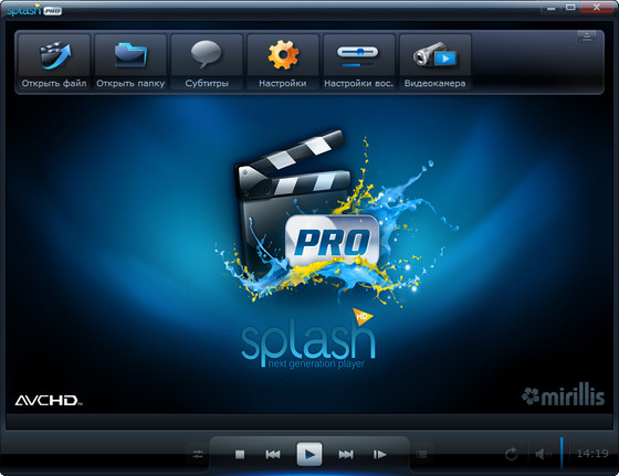 Новинка от компании Mirillis, медиаплеер Splash Pro, оптимизированный для проигрывания видео в высоком разрешении (High Definition AVC/H.264) и просмотра цифровых телевизионных каналов (DVB-T). Splash Player имеет встроенный кодек Mirillis AVC/H.264, который является собственной разработкой компании, и способен обеспечить высококачественное четкое и гладкое изображение в высоком разрешении. Плеер отличается стильным, удобным интерфейсом.