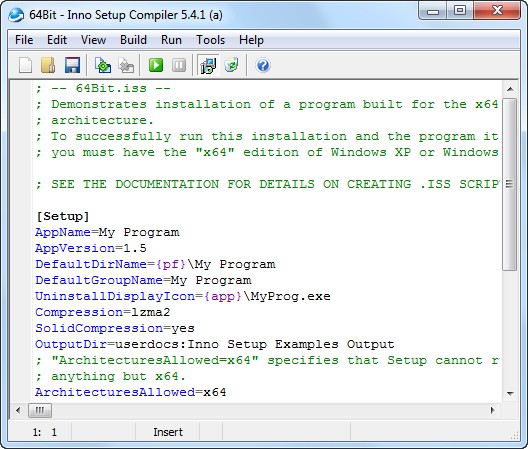 Inno Setup - программа для создания инсталляционных пакетов. Созданный утилитой инсталляционный файл какого-либо приложения, позволяет при его установке считывать и записывать данные в реестр и в конфигурационные INI-файлы. Тут имеется возможность регистрации библиотек и ActiveX компонентов, а также запуск внешних программ. Кроме того, в утилите есть опция создания типов установки, например, таких, как: полная установка, минимальная, выборочная и т.д. В Inno Setup присутствуют настройки, где можно определить возможность появления диалога Приветствия при запуске устанавливаемой программы. Для удобства работы здесь присутствует функция создания резервных копий инсталляционных проектов при их изменении. Справочная система утилиты достаточно хорошо расписана и подкреплена примерами.