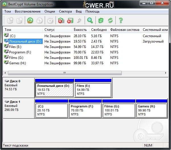 BestCrypt — программа для создания и поддержки зашифрованных виртуальных дисков. Программа позволяет шифровать данные несколькими алгоритмами шифрования, включая AES, Blowfish, Twofish, CAST и другими. Каждый алгоритм выполняется с максимально возможным размером ключа, определенного в спецификации алгоритма. Виртуальные диски появляются в системе как обычные локальные диски. Все системные и дисковые утилиты будут работать с ними обычным образом. Размер виртуального диска варьируется от нескольких мегабайт до сотен гигабайт, и вы можете создать любое количество виртуальных дисков. Зашифрованный файл-образ виртуального диска может быть скопирован на другие компьютеры.