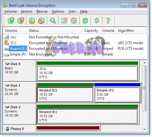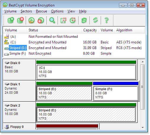 Программа BestCrypt Volume Encryption обеспечивает прозрачное шифрование всех данных, хранящихся на жёстких и съёмных дисковых устройствах. Термин прозрачное шифрование данных означает, что шифрование происходит автоматически, как только эти данные запрашиваются операционной системой Windows или любыми другими программами. BestCrypt Volume Encryption - это первая программа, открывающая новый класс продуктов, шифрующих Дисковые Тома (Disk Volume Encryption). С помощью такой программы пользователь имеет возможность шифровать как привычные дисковые разделы, так и современные дисковые тома, расположенные на нескольких дисках, например Перекрытые тома (Spanned volumes), Чередующиеся (Striped), Зеркальные (Mirrored) или тома RAID-5.