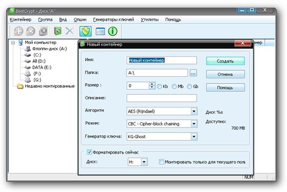 BestCrypt - программа, которая создает и поддерживает виртуальные зашифрованные диски для хранения в них важных данных. Программа позволяет шифровать данные несколькими алгоритмами шифрования, включая AES, Blowfish, Twofish, CAST и другие. Каждый алгоритм выполняется с максимально возможным размером ключа, определенного в спецификации алгоритма. Виртуальные диски могут иметь объем до 4 гб для файловой системы FAT32 и до 64 гб для файловой системы NTFS. В созданных дисках вы сможете размещать любые файлы, данные, устанавливать программы и делать все, что делаете и с обычными разделами вашего жесткого диска. Все созданные диски хранятся в файлах контейнерах, которые вы сможете резервировать, записывать на диски и другие цифровые носители, а также переносить и использовать зашифрованные данные на другом компьютере.