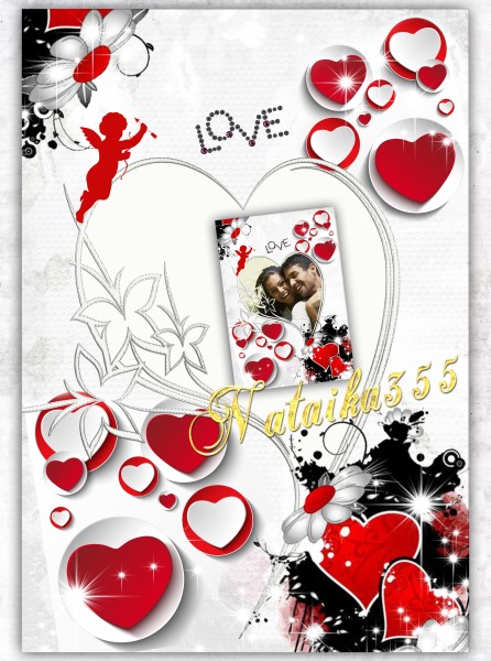 Романтическая фоторамка с поздравлением ко дню святого Валентина, все элементы на отдельных слоях.