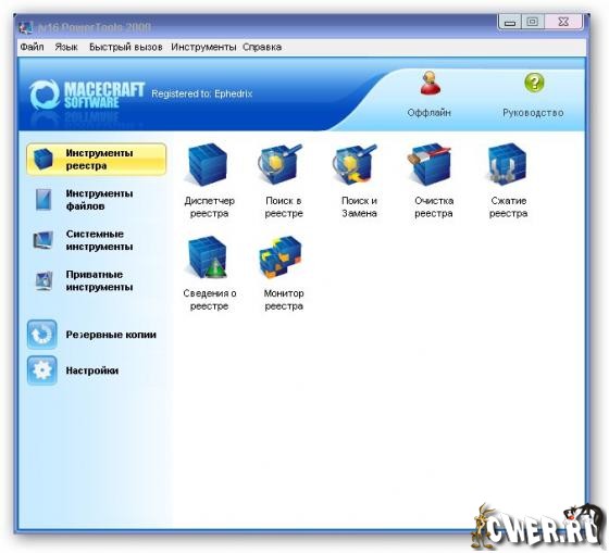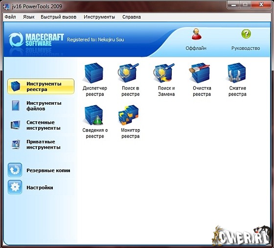 jv16 PowerTools - одна из лучших программ для работы с системным реестром и поддержания в оптимальном состоянии. Включает в себя инструменты для работы с реестром: мощный менеджер реестра - позволяет работать со списком программ из автозагрузки и деинсталляции, со списком зарегистрированных в системе типов файлов, расширений, контекстным меню IE (с тем, в которое часто вставляют свои пункты менеджеры закачек) и некоторыми другими. Этот менеджер часто помогает вручную удалить остатки после автоматической очистки реестра программы. Возможно использование в локальной сети.