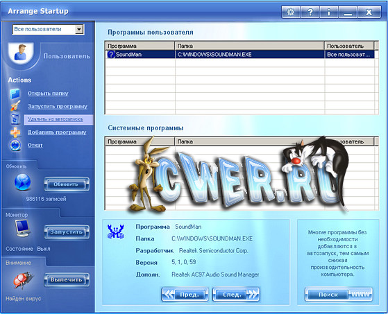 Arrange Startup - легкий и быстрый способ установить причины долгой загрузки системы. Программа проанализирует, что за файлы стоят на автозапуске, составит их полный список, не тронет системные, выделит подозрительные и позволит вам сделать с остальным списком все, что вы сочтете нужным. Посмотрите, все ли программы в автозапуске так уж необходимы вам? Встроенный антивирус защитит автозапуск от нежелательных программ.