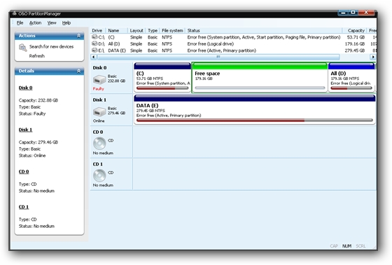 PartitionManager - программа для работы с разделами жестких дисков. Программа разработана таким способом, что похожа на стандартный Windows Disk Manager, но, в отличии от него, включает в себя ряд передовых возможностей, таких как изменение размера разделов и перенос дисков на новое местоположение. Также стоит отметить, что программа поддерживает все типы дисков, начиная от жестких дисков и заканчивая USB носителями и картами памяти, которые так же могут быть разделены и т.д. Интерфейс программы прост и удобен в использовании.