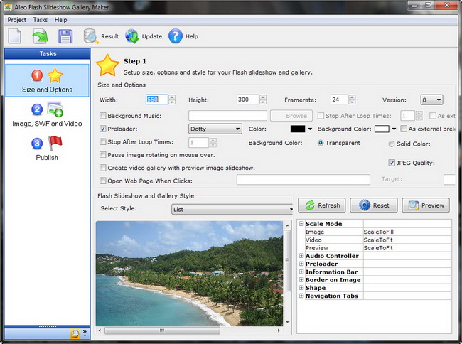 Flash Slideshow Gallery Maker - программа для создания анимированной галереи FLASH-слайдшоу из обычных цифровых фотографий. Данная утилита предоставляет большое количество эффектов перехода одной фотографии в другую, имеет различные темы внешнего оформления и позволяет устанавливать музыкальное сопровождение. Данная программа представлена интерфейсом в стиле мастера и не требует Adobe Flash Studio или знаний работы с флэш.