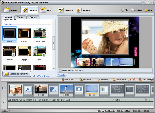 Wondershare Flash Gallery Factory - очень мощная и в тоже время простая в пользовании программа для создания Flash галереи. Wondershare Flash Gallery Factory включает в себя большой набор шаблонов, которые позволяют делать разнообразные презентации снимков, как для web дизайна, так и обычные flash слайд шоу. Цифровой фотоальбом, 3D flash галерея, web галерея, flash слайд шоу, а также flash баннеры, можно создать в Wondershare Flash Gallery Factory без навыков программирования.