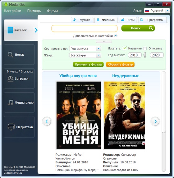 MediaGet - утилита для поиска и скачивания медиафайлов на открытых торрент-трекерах. Каждый человек, пользующийся интернетом, привык скачивать из сети различную музыку, фильмы или игры напрямую с сервера. Но бывают ситуации, когда на любимом сайте искомый файл отсутствует по каким-либо причинам... В этих случаях на помощь приходит замечательный сервис MediaGet, который откроет вам доступ в мир закрытых пиринговых сетей, в которых возможно найти практически любой нужный вам файл. Будь то редкая музыка, недавно вышедший фильм или любая программа - всё это можно скачать с помощью MediaGet. Программа поддерживает огромное количество открытых торрент-трекеров, вы без труда найдете нужный вам файл и скачаете на максимальной скорости.