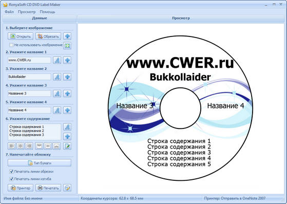 RonyaSoft CD DVD Label Maker - представляет собой программное обеспечение для дизайна этикеток и красивых обложек для вашего видео, mp3 диска, а данных, фото слайд-шоу. Простота в использовании, с помощью мастеров позволяет создавать обложки всего за несколько кликов. Программа содержит шаблоны - этикетки для CD, Slim CD, DVD, DVD Slim.