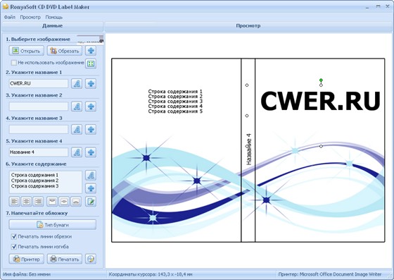 RonyaSoft CD DVD Label Maker - представляет собой программное обеспечение для дизайна этикеток и красивых обложек для вашего видео, mp3 диска, а данных, фото слайд-шоу. Простота в использовании, с помощью мастеров позволяет создавать обложки всего за несколько кликов. Программа содержит шаблоны - этикетки для CD, Slim CD, DVD, DVD Slim.