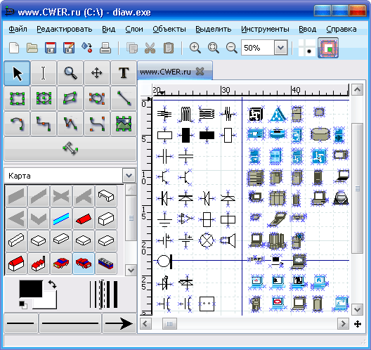 Dia - это бесплатная программа для создания схем и диаграмм. Неплохая альтернатива известной коммерческой программы Visio. Программа может использоваться для создания диаграмм самых разных типов, имеет специальные инструменты для рисования электрических и логических схем, карт, сетевых диаграмм, блок-схем и так далее. Может загружать и сохранять диаграммы в формате XML, экспортировать в форматы EPS, SVG, XFIG, WMF и PNG.