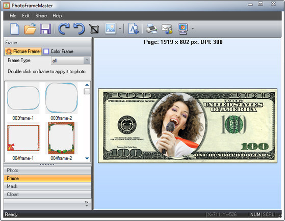 Photo Frame Master - программа от компании Pearl Mountain Soft, которая позволяет качественно преобразить Ваши фотографии. Ее ключевой особенностью является огромный набор различных функций, которые могут быть применены к фотографиям, чтобы сделать их более оригинальными и впечатляющими. Кроме того, программа поддерживает различные маски и клипарты, так же присутствуют такие основные функции редактирования, как флип, повернуть, обрезать, настройка яркости, контрастности и т.д.