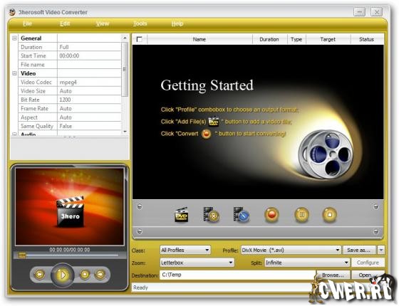 3herosoft Video Converter - поддерживает практически все популярные портативные устройства, такие как IPod, iPhone, PS3, PSP, Xbox, Apple TV, Zune, Creative Zen, Blackberry, мобильный телефон, Archos, Pocket PC и т.д. 3herosoft Video Converter поддерживает так все вокруг видео форматов, таких как WMV, AVI, DivX, MPEG, MP4, H.264/MPEG-4 AVC, RM, MOV, XviD, FLV, 3GP, VOB (видео формат, используемый в DVD) , DAT (видео в формате VCD, SVCD), и так далее. Она также может извлекать аудио из видео файлов и конвертировать их в M4A, MP3, AC3, AAC, WMA, WAV, OGG, как вы хотите.